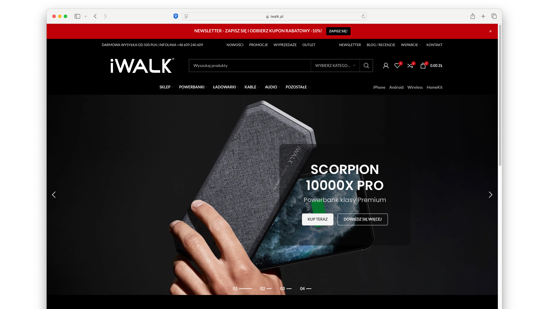 Sklep online dla firmy iWALK Polska zajmującej się sprzedażą markowych powerbanków, ładowarek, kabli i innych akcesoriów do smartfonów oraz tabletów.